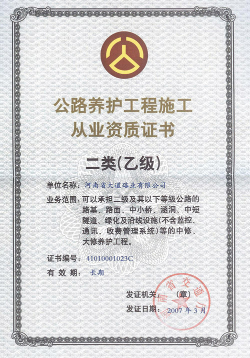 最新公告: ·獲取更多資訊,請(qǐng)關(guān)注“河南省大道路業(yè)有限公司”微信公眾號(hào)